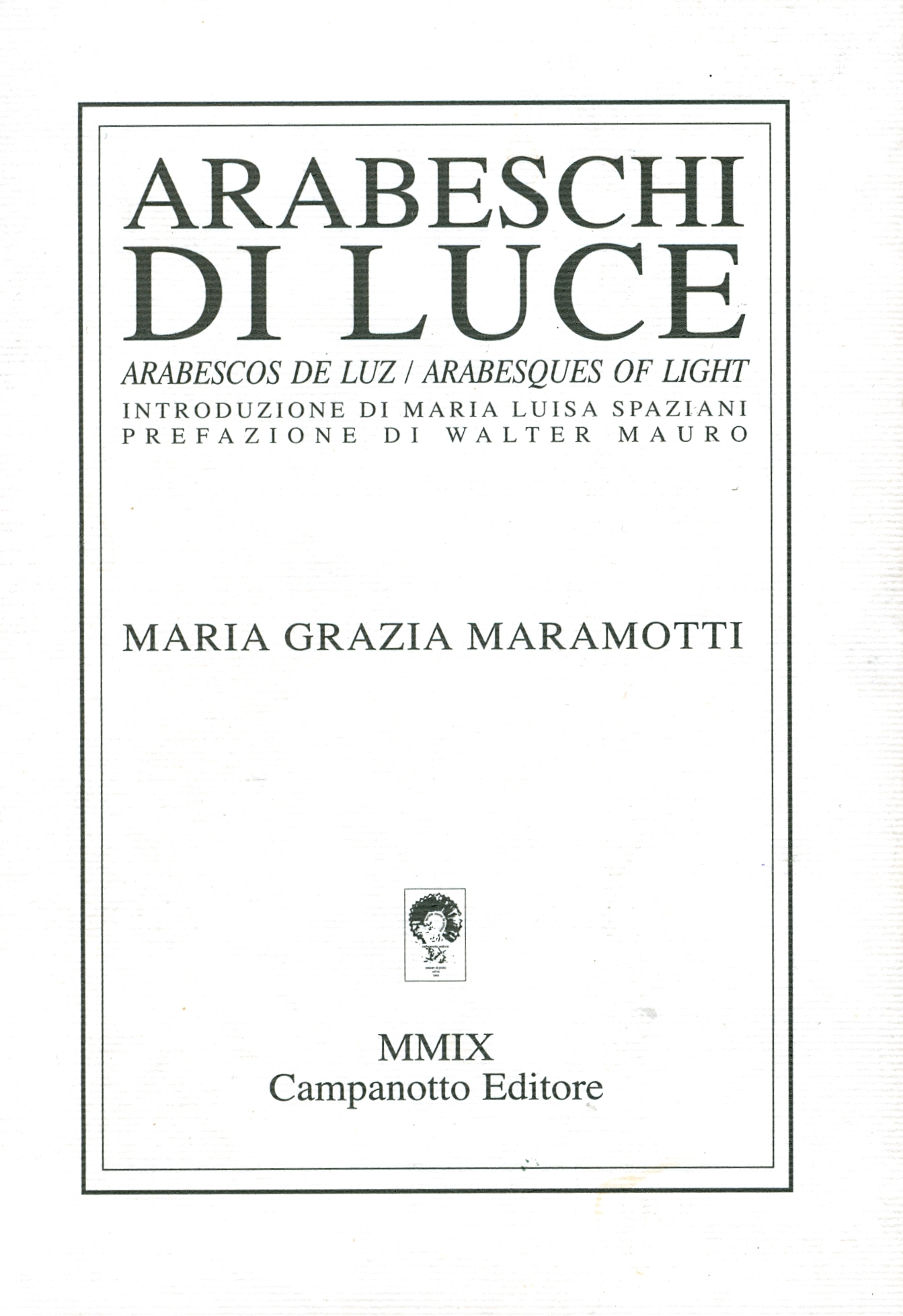 E se la poesia fosse il riflesso della Luce che vedemmo (anzi: che eravamo) prima di nascere? Come quando guardiamo le cose dopo aver fissato troppo il sole: le vediamo intarsiate dagli “arabeschi” di quella luce, una patina d’oro che si sovrappone alla materia, prima di svanire poco a poco. Maria Grazia Maramotti è una poetessa coraggiosa, giacché non pone limiti di concetto al processo conoscitivo da cui distilla il liquore puro della parola. Nel suo Arabeschi di luce (Campanotto, 2009, pp. 142, Euro 12) si confronta con le cose più alte, cioè con il mistero enorme della natura, che poi è la semplice grandezza della realtà e l’articolazione del cosmo – su basi e strutture invisibili – a partire da un Logos originario. La poesia dunque (fatta in ogni caso di parole che, sia pur suggestive, restano magnetizzate intorno al cerchio della loro convenzione linguistica) non sarebbe “altro” dal negativo della foto metafisica con cui il poeta vuole trafiggere l’essenza di ogni “scena” che la vita gli propone. Ed è una foto che forse il poeta ha già scattato da sempre, prima ancora di avere occhi carnali per inquadrare il mondo. Forse conoscere è davvero ricordare?