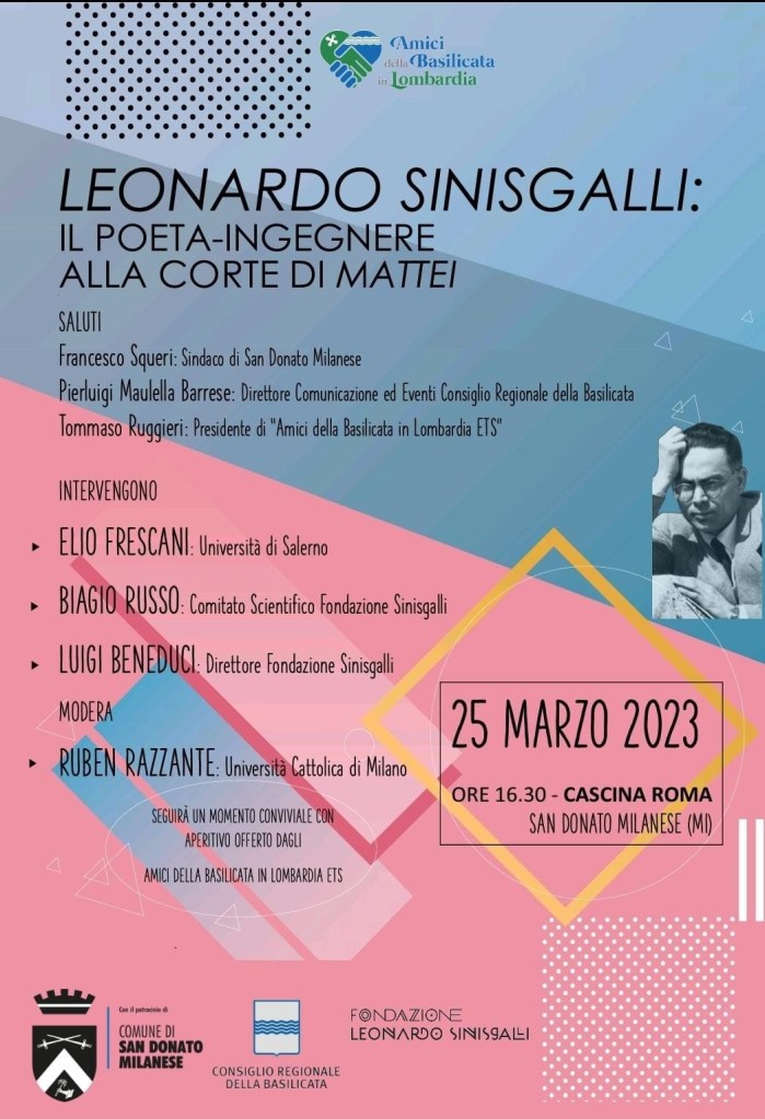Affronteranno il tema Elio Frescani, docente presso l’Università di Salerno, Luigi Beneduci, direttore della Fondazione Leonardo Sinisgalli di Montemurro e Biagio Russo, membro del Comitato Scientifico della Fondazione stessa e pioniere degli studi su Leonardo Sinisgalli.