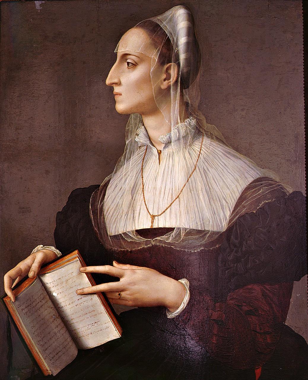 E così la poetessa Laura Battiferri emerge: è moglie di Bartolomeo Ammannati, (1511– 1592) che è stato architetto scultore tra i più impegnati nella Firenze medicea; amica e corrispondente del Varchi, umanista, scrittore e storico, e del Bronzino che la ritrarrà; scriverà in onore di Leonora Cibo de’Vitelli un sonetto che tratteggia il nuovo ideale femminile: