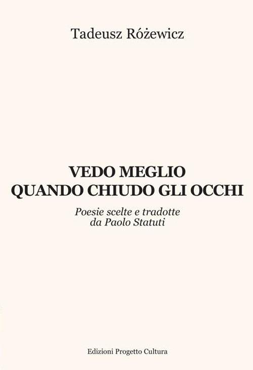da Tadeusz Różewicz, Vedo meglio quando chiudo gli occhi (Poesie scelte e tradotte da Paolo Statuti), Ed. Progetto Cultura, Roma, 2019, pp.139, 12 euro